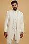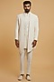 Featuring a cream indowestern jacket in georgette base with sequins embroidery. It is paired with a kurta and pants. Style it with classic mojaris for a wedding, sangeet or engagement ceremony, exuding charm and elegance.