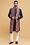Featuring a dark blue sherwani in blended rayon base. It is paired with pants and a dupatta. Elevate this sherwani set with mojaris for a wedding, sangeet or engagement ceremony, exuding charm and elegance.
