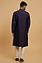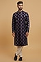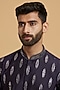 Featuring a dark blue kurta in blended viscose base with mirror work and embroidery. It is paired with pyjama pants. Elevate this kurta set with kolhapuri sandals for a festive occasion, daytime pooja or intimate wedding?rituals.
