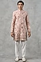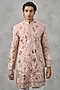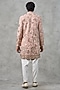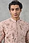Featuring a dusty pink kurta in brocade base with sequins and thread embroidery. It is paired with pyjama pants. Style it with mojaris for a festive occasion, cultural event, wedding or engagement ceremony.