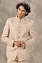 Featuring a fawn-colored jodhpuri in art silk base with sequins and thread embroidery. It is paired with pants. Style it with pair of shoes for a festive occasion, reception, sangeet or engagement ceremony.