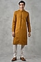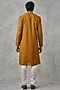 Featuring a golden mustard kurta in georgette base with thread embroidery. It is paired with churidar. Style it with mojaris for a festive occasion, haldi, wedding or engagement ceremony.
