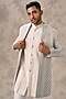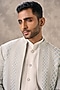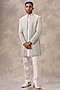 Featuring a light blue indowestern jacket in georgette base with thread embroidery. It is paired with a kurta and pants. Style it with mojaris for a reception, sangeet, wedding or engagement ceremony.