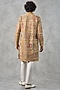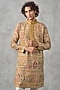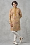 Featuring a mustard yellow kurta in georgette base with sequins and thread embroidery. It is paired with churidar. Style it with mojaris for a festive occasion, cultural event, haldi or engagement ceremony.