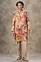 Pink Art Silk Printed & Beadwork Kurta Set