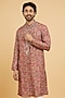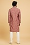 Featuring a red kurta in art silk base with print. It is paired with churidar pants. Elevate this kurta set with kolhapuri sandals for a festive occasion, daytime pooja or intimate wedding rituals.