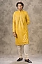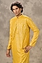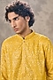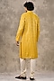 Featuring a sunlit yellow kurta in georgette base with mirror work. It is paired with churidar. Style it with mojaris for a festive occasion, cultural event, haldi or engagement ceremony.