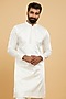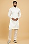 Featuring a white kurta in blended rayon base. It is paired with pyjama pants. Elevate this kurta set with kolhapuri sandals for a festive occasion, daytime pooja or intimate wedding rituals.