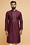 Featuring a wine kurta in art silk base with zari, sequins work and embroidery. It is paired with pyjama pants. Elevate this kurta set with kolhapuri sandals for a festive occasion, daytime pooja or intimate wedding rituals.