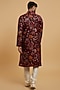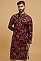 Featuring a wine kurta in blended viscose base with print, beads and stone work. It is paired with pyjama pants. Elevate this kurta set with kolhapuri sandals for a festive occasion, daytime pooja or intimate wedding?rituals.