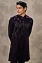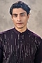 Featuring a wine kurta in knit fabric base with stone and beadwork. It is paired with pyjama pants. Style it with mojaris for a festive occasion, cultural event, wedding or engagement ceremony.