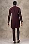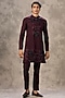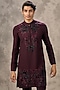 Featuring a wine kurta in knit fabric base with stone, beads work and thread embroidery. It is paired with pants. Style it with pair of kolhapuri sandals and a bracelet for a festive occasion, cultural event, wedding or engagement ceremony.