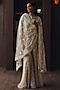 Featuring a beige asymmetrical triangle dupatta in net base. Accentuate it with jacket, sharara, dangler earrings and heels for festive gatherings, cultural events or wedding ceremony.