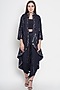 Featuring a blue long asymmetric jacket in georgette base with chevron mirror hand embroidery. This contains only one piece.
