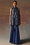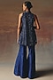 Twenty Nine features blue bell-bottom pants in dupion base. Accentuate it with an embroidered kurta, dangler earrings and block heels for an elegant look, perfect for festive occasions, pooja ceremonies or pre-wedding functions.