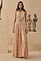 Featuring a blush dress in net base with halter neck and mirror hand embroidery. Accentuate it with statement jewellery and wedges, perfect for sangeet ceremony, festive brunches or contemporary celebrations.