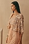 Featuring a blush bandeau in net base with mirror and beads work. Style it with a skirt, zircon stud earrings and metallic high heels for a a cocktail, sangeet or evening soirees.
