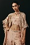 Featuring a blush pink cape in tissue base with v-neckline, applique, zari and mirror work. Accentuate it with pants, dangler earrings and heels for festive gatherings or sangeet ceremony.