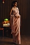 Featuring a coral blush saree in georgette base with crystals, beads, mirror and 3D floral embellishments, adorned with organza pleated border. It is paired with an embellished blouse having beaded tassels and a satin box pleated petticoat. Accentuate it with dangler earrings and heels for festive gatherings, cultural events or wedding ceremony.