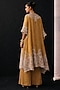 Featuring deep gold palazzo pants in tissue base with mirror embellished belt. Accentuate it with a kurta, dangler earrings and heels for festive gatherings or pooja ceremony.