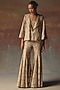 Twenty Nine features gold boot-cut pants in georgette base with chikankari embroidery. Accentuate it with a kurta or top, dangler earrings and block heels for an elegant look, perfect for festive occasions, pooja ceremonies or pre-wedding functions.