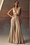 Twenty Nine features a gold bralette in georgette base with mirror and bead work. Accentuate it flared pants and a shrug, hoop earrings and block heels for a chic look, perfect for beach parties or weekend getaway.