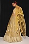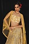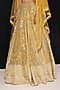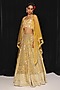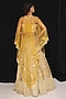 Featuring a golden yellow pleated lehenga in tissue and georgette base with mirror and chikankari embroidery. It is paired with a 3D floral blouse and a net embellished cape. Accentuate the designer lehenga with statement jewellery and heels for a wedding or engagement ceremony.