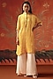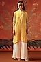 Twenty Nine features a honeycomb oversized kurta in a gajji silk bandhani base with bead and mirror work. Accentuate it with straight pants, statement earrings, and block heels for a refined festive look, ideal for family gatherings and celebrations.