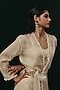 Featuring an ivory bandeau top in crepe silk base. Accentuate it with pants, dangler earrings and block heels for evening or cocktail soirees.