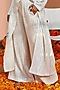Featuring an 18' ivory cropped corset top in georgette chevron base with an elasticated back. It is paired with a matching notch collar jacket and bell-bottom pants having mirror work embroidery.