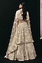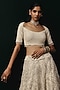 Featuring an ivory lehenga in net base with mirror and pearl work. It is paired with a blouse having wide-neckline and a dupatta with boota work. Style it with meenakari or zircon jewellery, metallic heels and and a clutch bag, perfect for a cocktail, sangeet, or engagement ceremonies.