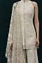 Featuring an ivory dupatta in net base with mirror and beads work. Style it over a sharara set, zircon stud earrings and metallic high heels for a a cocktail, sangeet or evening soirees.