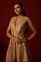 Featuring a marigold yellow peplum top in tulle base with a slit at back, mirror and beadwork embellishments. Accentuate it with pants, statement jewellery, a sleek clutch and embellished heels for a graceful look, perfect for festive occasions or sangeet nights.