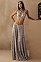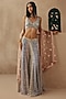 Featuring multi-colored sharara pants in net base with mirror work. It is paired with a sky blue embroidered blouse and a blush tulle dupatta having crystal and tassels detail. Style it with meenakari or zircon jewellery, metallic heels and a potli bag, perfect for a cocktail, sangeet, or engagement ceremonies.