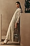 Featuring a natural dress in net base with mirror work. It is paired with an embroidered layered jacket. Style it with statement earrings, soft curls and block heels, perfect for an evening look.