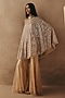 Natural Tulle Mirror Work Boot-Cut Pants