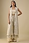 Featuring an off-white long jacket in georgette base with 3D embellishments. Accentuate it with pants, bustier, stud earrings and heels for festive occasions.