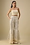 Featuring an off-white bandeau in stretch satin base. Accentuate it with pants, stud earrings and heels for festive occasions.