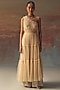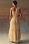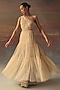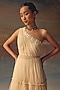Twenty Nine features a peach one-shoulder anarkali layered dress in soft net base with beads and mirror embellishment. Accentuate it with pants, minimal jewellery, and heels for festive occasions, family gatherings or a pooja ceremony.