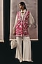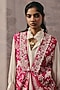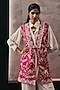 Featuring a rani pink long gilet in crepe silk base with a lapel collar and beads embellishment. Accentuate it with a co-ord set, dangler earrings and block heels for festive soirees or daytime functions.