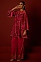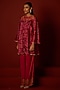 Featuring a rani pink A-line tunic in patola base with marodi embellishment and tassels detail. It is paired with satin silk palazzo having marodi embellishment. Accentuate it with statement jewellery, a sleek clutch and embellished heels for a graceful look, perfect for festive occasions or pooja ceremonies.