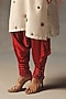 Twenty Nine features a red dhoti in modal satin base with mirror work. Accentuate with a top, silver dangler earrings, a statement clutch and block heels for festive occasions, sangeet ceremony.