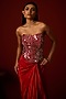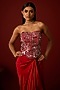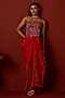Featuring a red corset in twill base with mirror and beads embellishment. Style it with a skirt, statement jewellery and heels for a cocktail look, perfect for pre-wedding functions or sangeet ceremony.