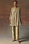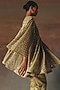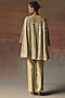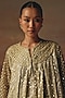 Twenty Nine features a sage green A-line jacket dress in georgette base with box-pleat detailing, mirror and beadwork. Accentuate it with color-coordinated pants, minimal jewellery, and heels for festive occasions, family gatherings or a pooja ceremony.