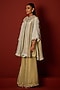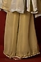 Featuring sage green palazzo in tissue base with tassels detail. Accentuate it with an embroidered kurta, dangler earrings and block heels for a graceful look, perfect for festive occasions, pooja ceremonies or daytime celebrations.