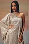 Twenty Nine features a silver one-shoulder dress in georgette and net base with mirror work. Accentuate with silver dangler earrings, a clutch and metallic heels for an evening soiree, dinner or cocktail party.