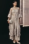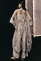 Featuring silver and grey palazzo pants in dola silk base. Accentuate it with a kurta, dangler earrings and heels for festive gatherings or pooja ceremony.