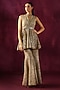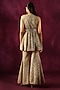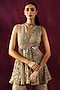 Featuring a taupe peplum jacket in lace fabric base with mirror work. It is paired with a belt. Accentuate it with pants, statement earrings and heels for an evening look.