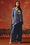 Twenty Nine features a twilight round cape in gajji silk bandhani base with mirror, resham and resham embroidery. Style it with pants, top, heels and statement earrings for a festive look.