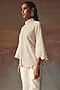 Twenty Nine features white bell-bottom pants in dupion base with mirror and beadwork. Accentuate it with an embroidered kurta, dangler earrings and block heels for an elegant look, perfect for festive occasions, pooja ceremonies or pre-wedding functions.
